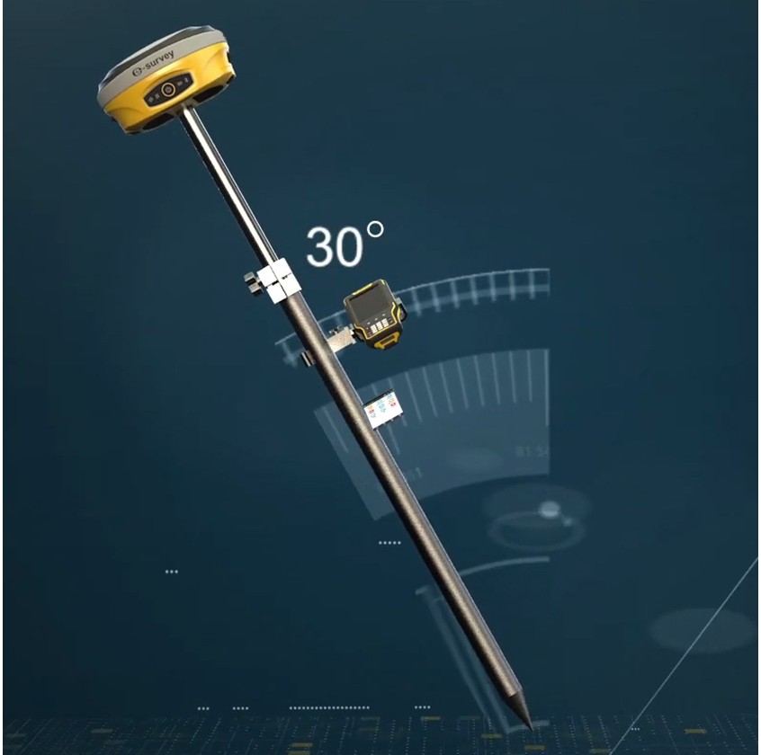 - Tilt survey - The E600 receiver integrates an electronic bubble sensor, combined with a new tilt survey algorithm and surpad software operation. No calibration is required before measurement, the accuracy of coordinate data can be easily achieved within 30° tilt angle.